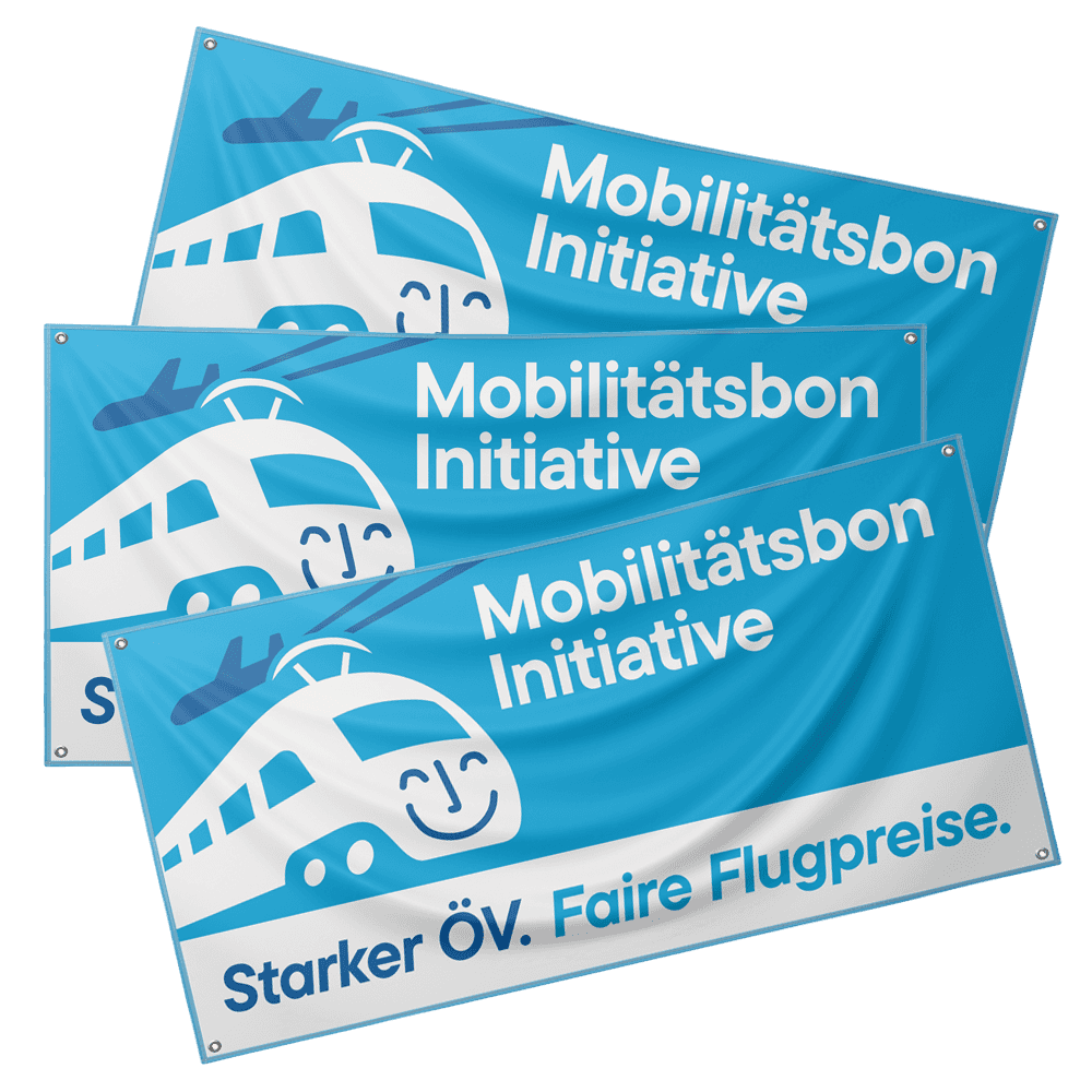 Bestelle jetzt kostenlos eine Fahne für die Mobilitätsbon-Initiative:
