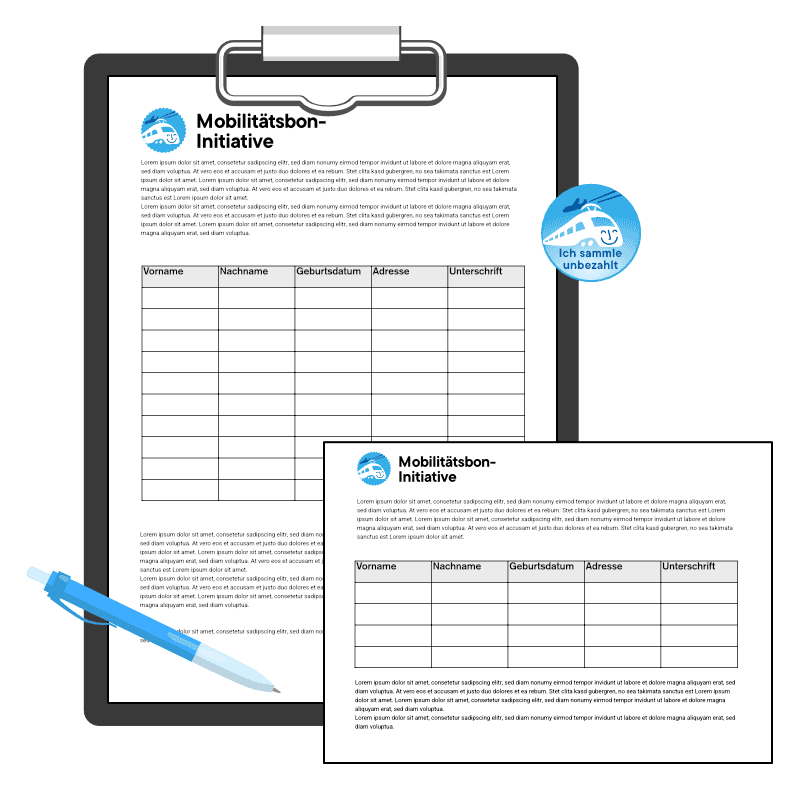 10 Unterschriftenbögen für je 10 Unterschriften